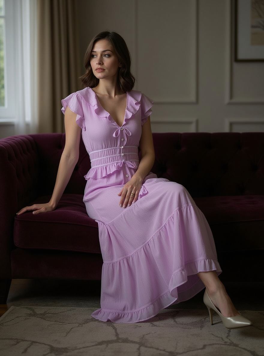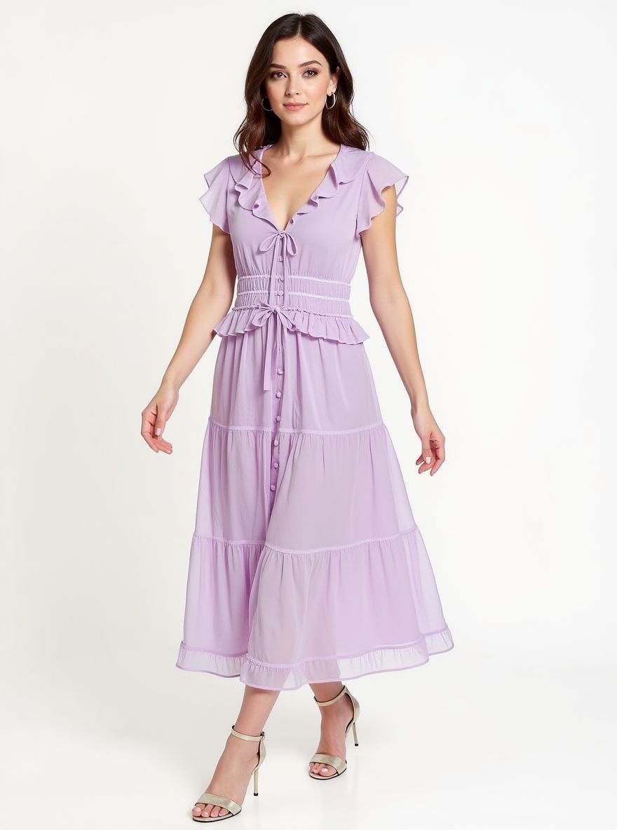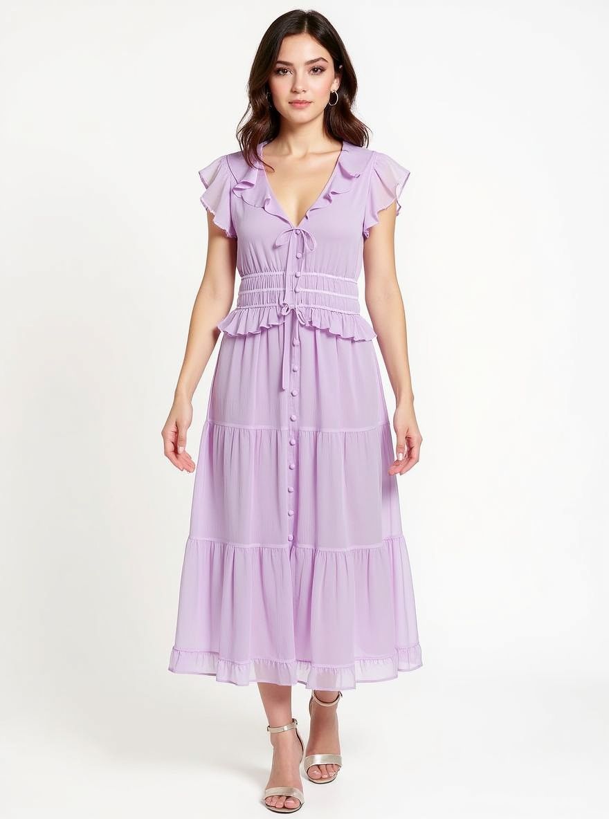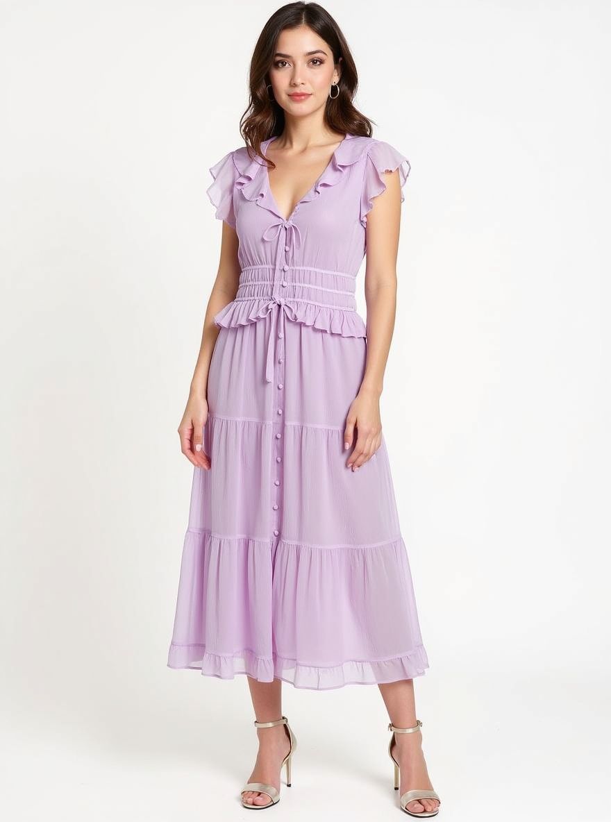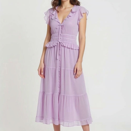 Paradis Silk Ruffled Midi-Dress.